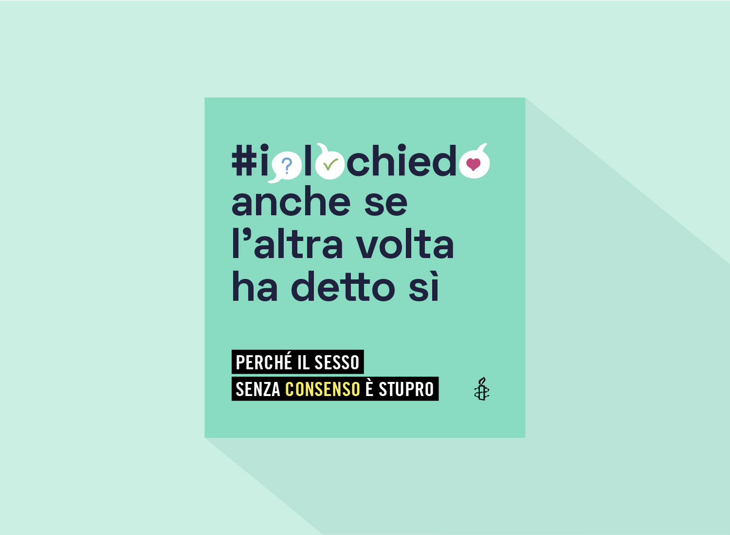 #iolochiedo è una campagna che va oltre la promozione del concetto di "No significa no, sì significa sì" e si concentra sullanatura stessa del consenso. Rappresenta la scelta di Amnesty International Italia di parlare del sesso e dei diritti della sfera sessuale in termini positivi, lontano dal gender-conformity e dai suoi limiti.