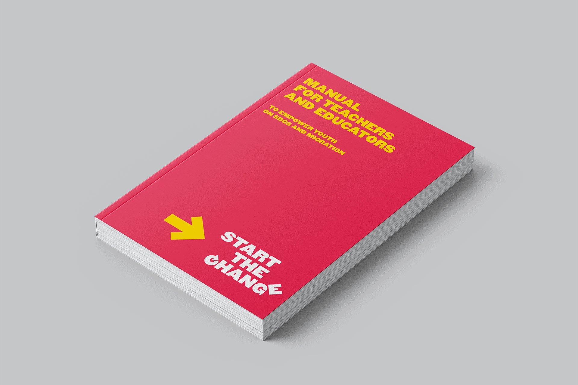 Studio Super Santos ha supportato Start The Change nella creazione dei materiali di comunicazione, sia online che offline, attraverso consulenze di strategia creativa, presentazione ai partner delle normative elaborate, assistenza ai partner per l'applicazione delle stesse. La collaborazione ha portato alla declinazione dell'identità visiva nel sito ufficiale del progetto, al manuale internazionale per insegnanti ed educatori, a toolkit di risorse, oltre che materiali di merchandising e la guida 8 steps to be a changemaker, progetto finale che raccoglie tutte le migliori esperienze dei tre anni di progetto in un portale che accompagna i giovani che voglio attivarsi per un mondo migliore.