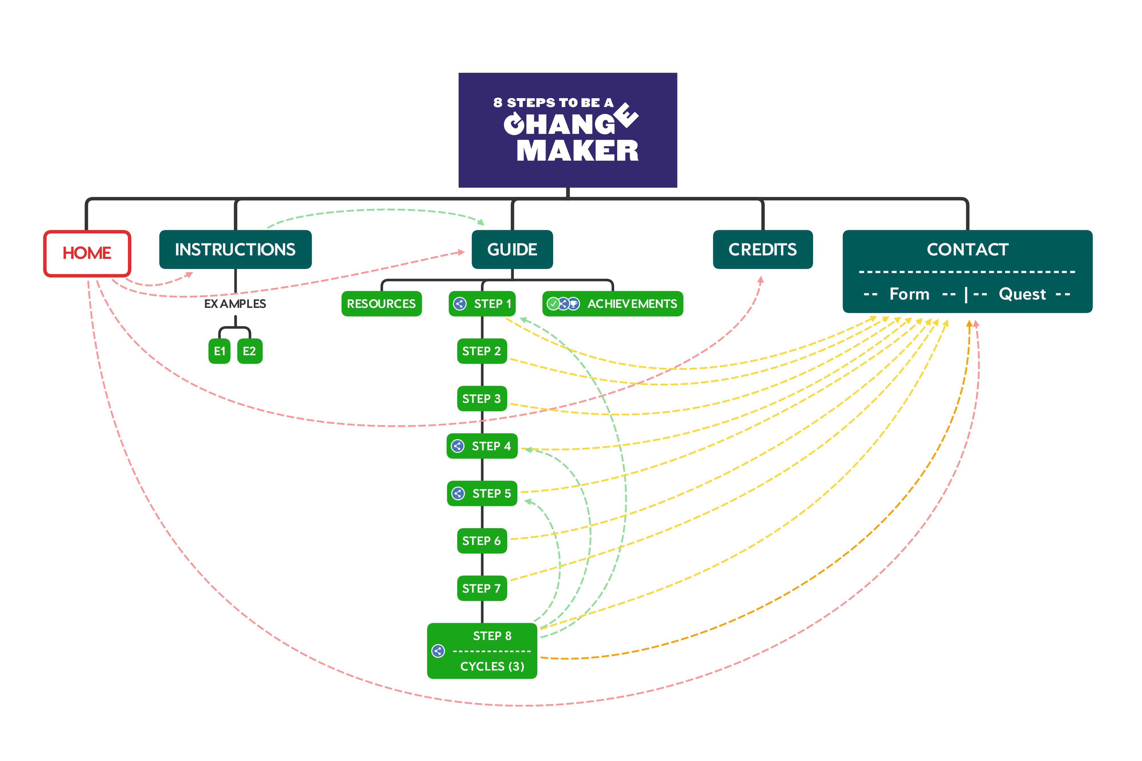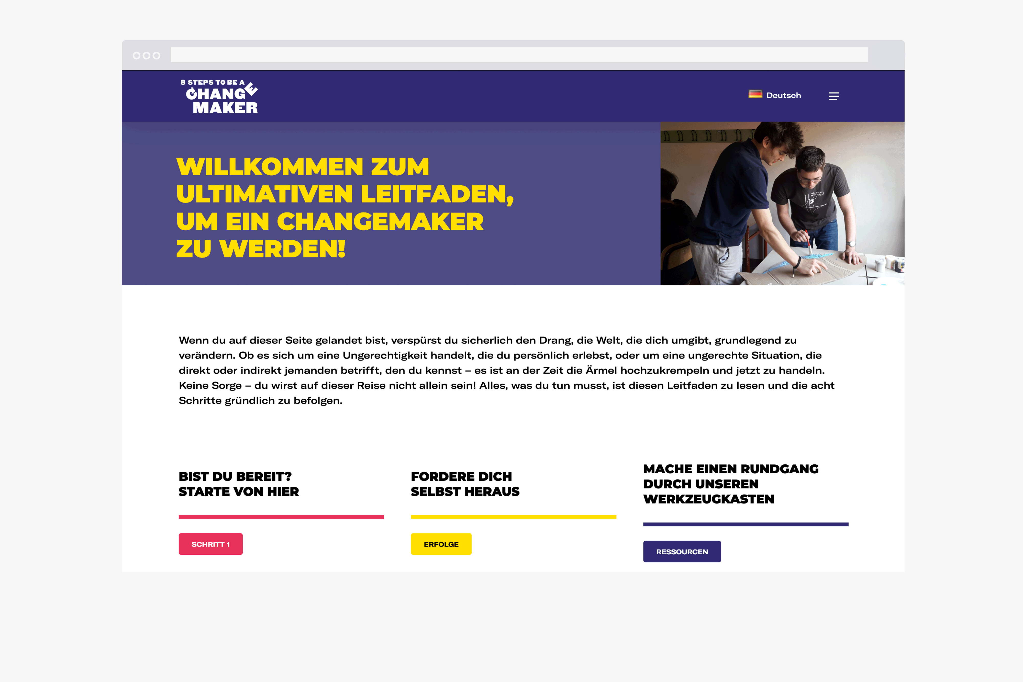 Through strategic workshops organised with the project leaders, we opted for the production of a digital guide divided into 8 steps, 4 sections and translated into 10 languages. 8 Steps to be a Changemaker is a platform offering advice, insights and tools to help groups of young activists convert their insights into real action.