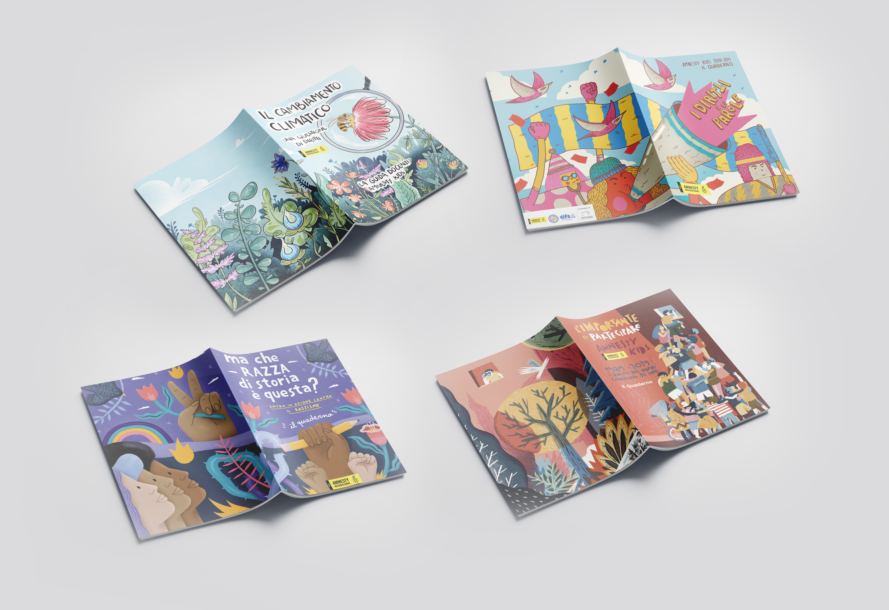The illustrative component plays a key role in the entire learning process. In fact, each issue of Amnesty Kids sees the involvement of a different illustrator who each year customizes the educational path with his or her own style and makes the final project vibrant and unique. Every year Studio Santos draws from its network and chooses the most suitable illustrator to convey the educational campaign promoted by Amnesty International every year.
