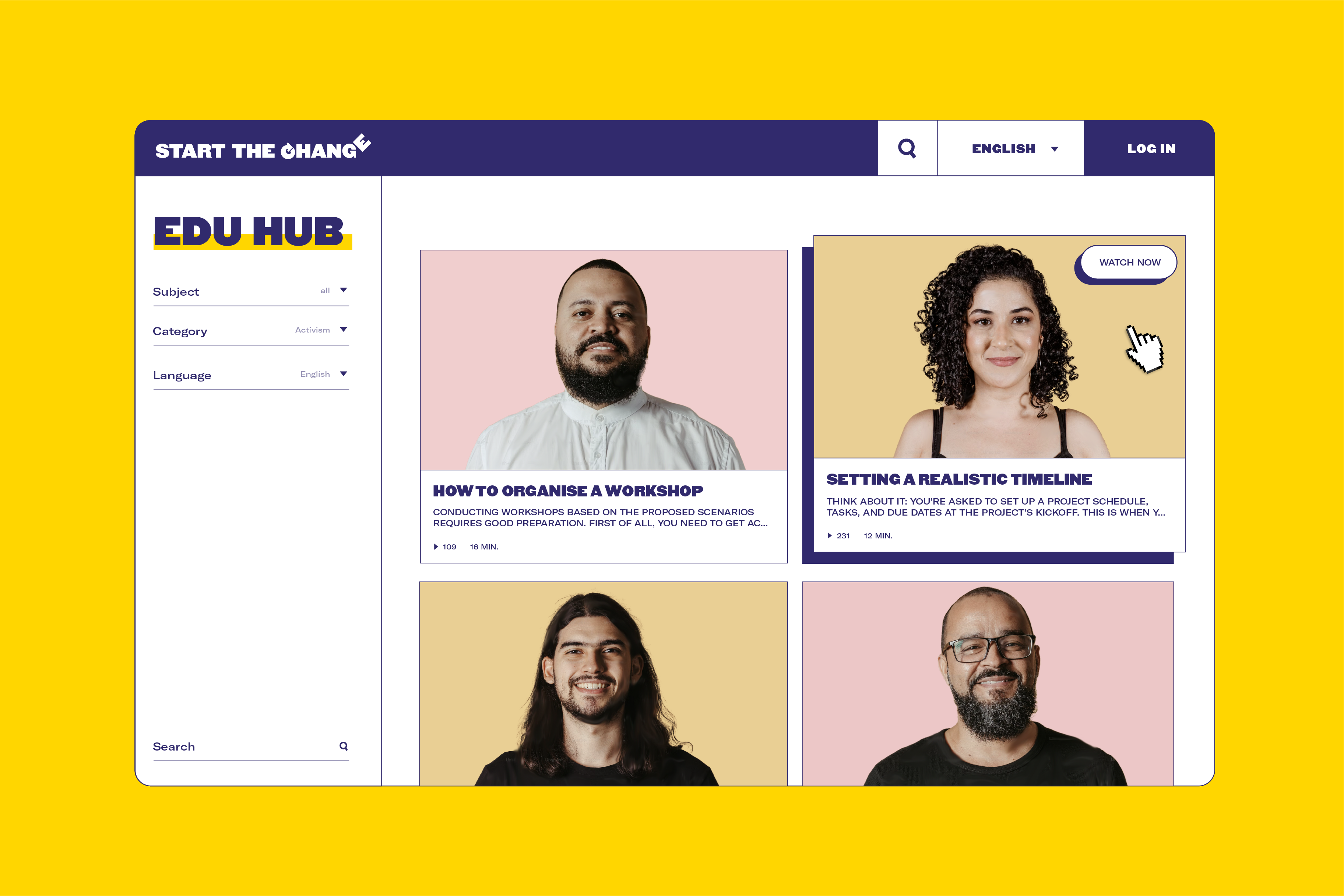 During the 3 years of duration of the project, Studio Super Santos supported Start The Change in the creation of all the communication materials, both online and offline, while offering a creative strategy consultancy. The collaboration had lead to the creation of the official website, manual for teachers and educators, toolkits of resources, merchandise materials and a final guide of the good practices collected from 2017 and 2020 called 8 steps to be a changemaker.